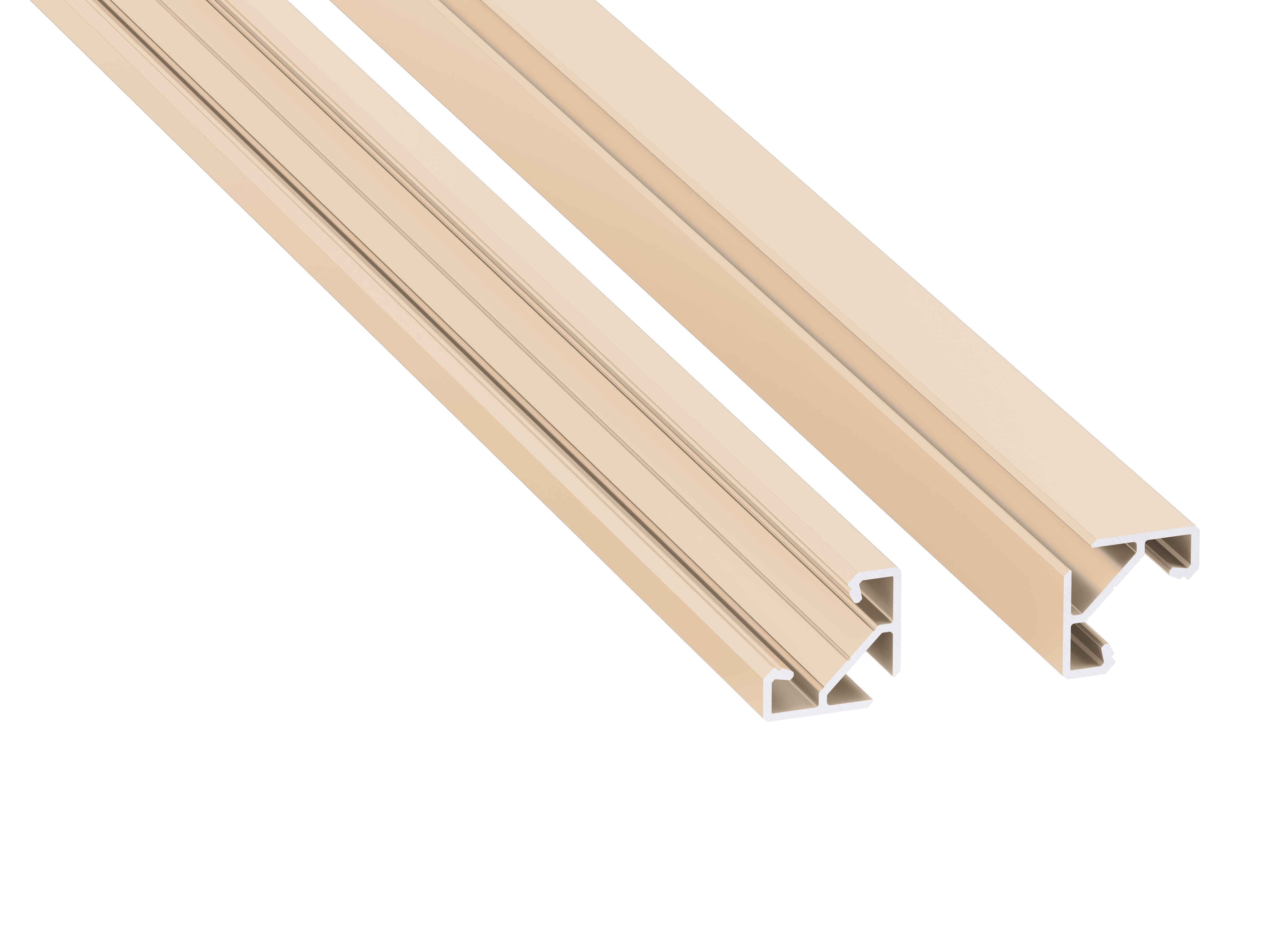 Aufputz- oder abgehängtes LED-Profil, das in einem Winkel von 45° strahlt. Ideal für gerichtete Anwendungen in der dekorativen Beleuchtung und Akzent.