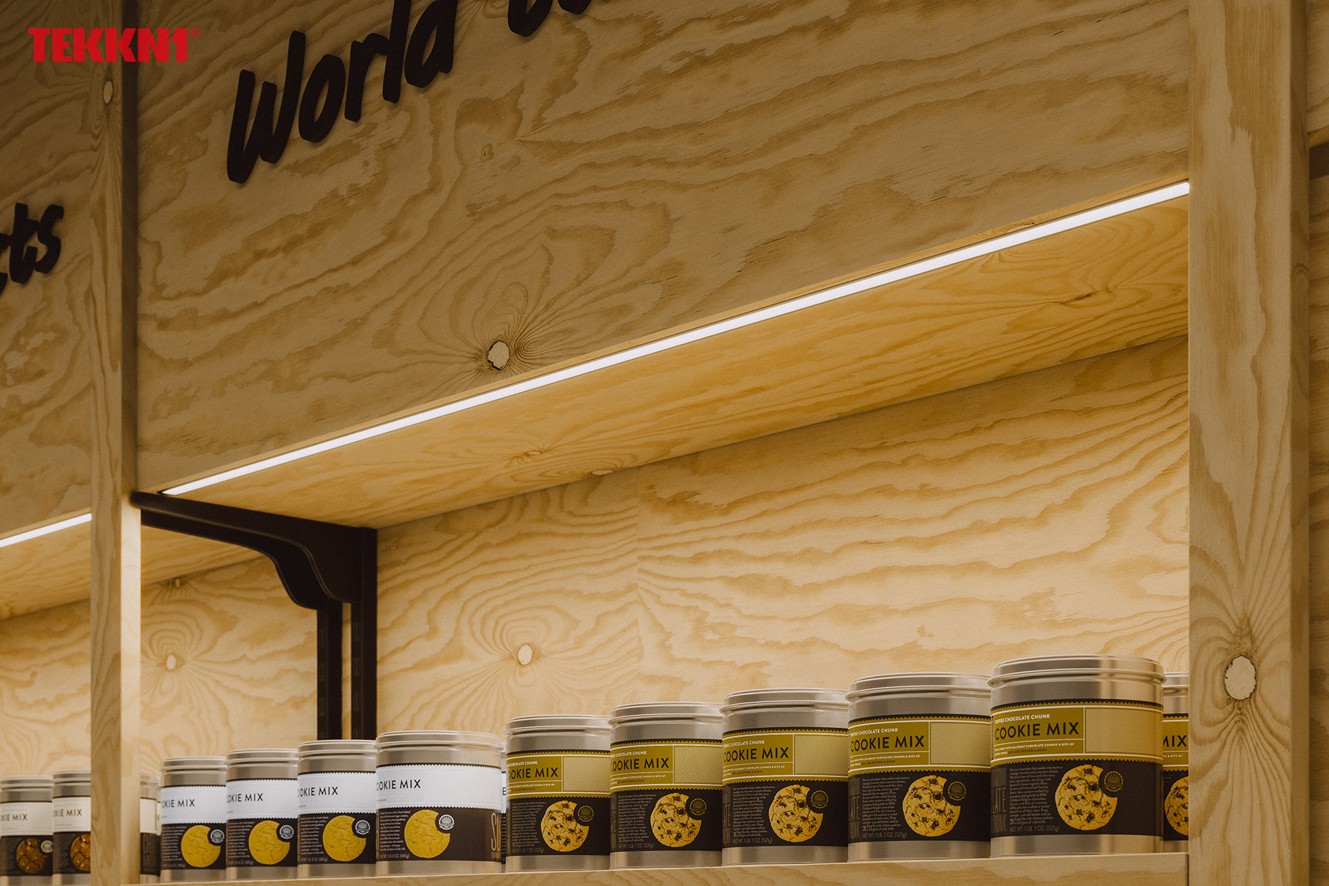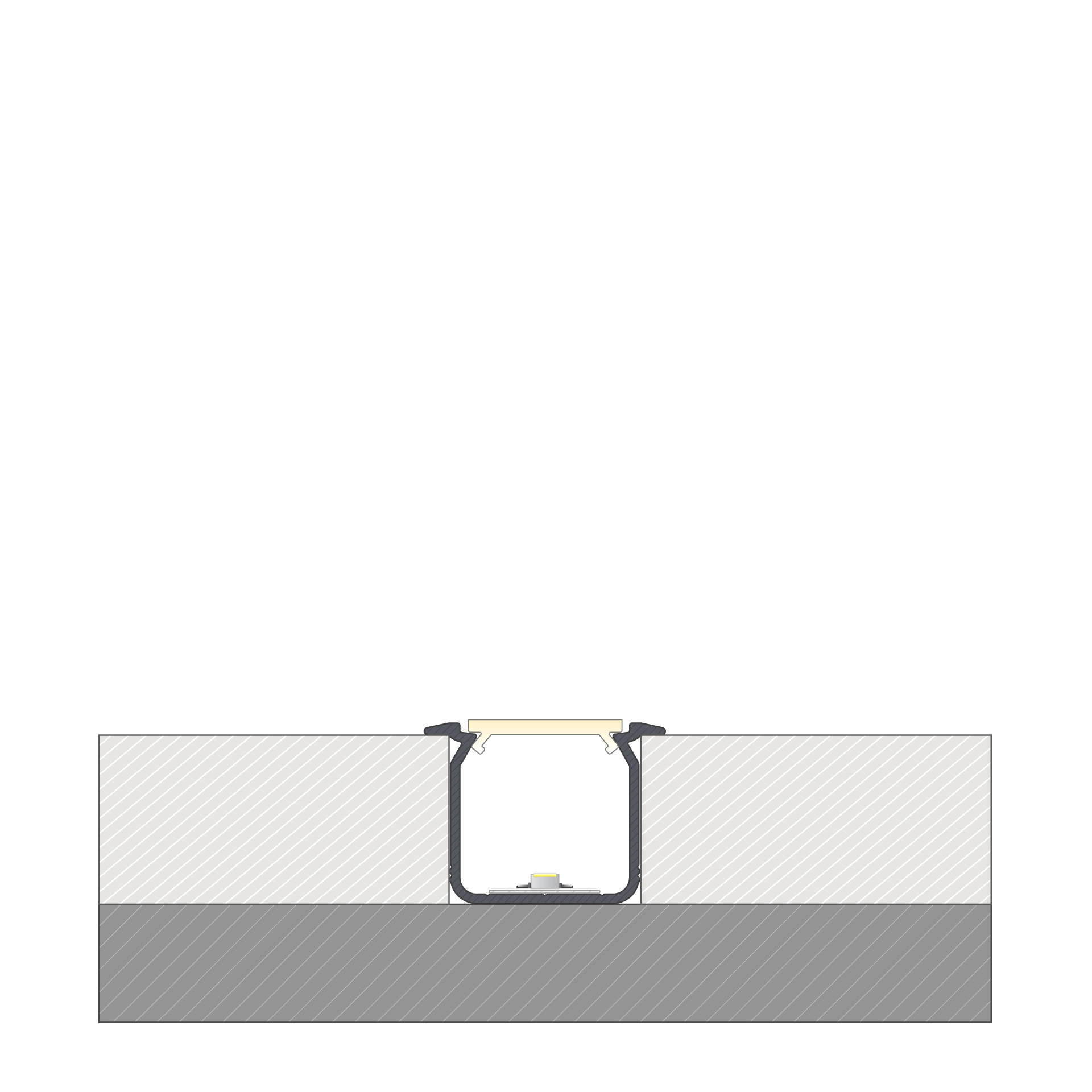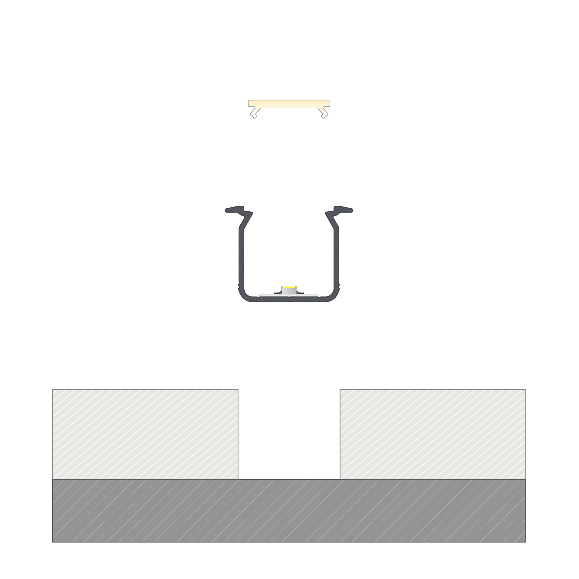 LED-Einbauprofil für Anwendungen in Küchen und Ausstellungsbereichen. Eingesetzt zur Beleuchtung von Schränken, Arbeitsplatten und anderen Arbeitsflächen.