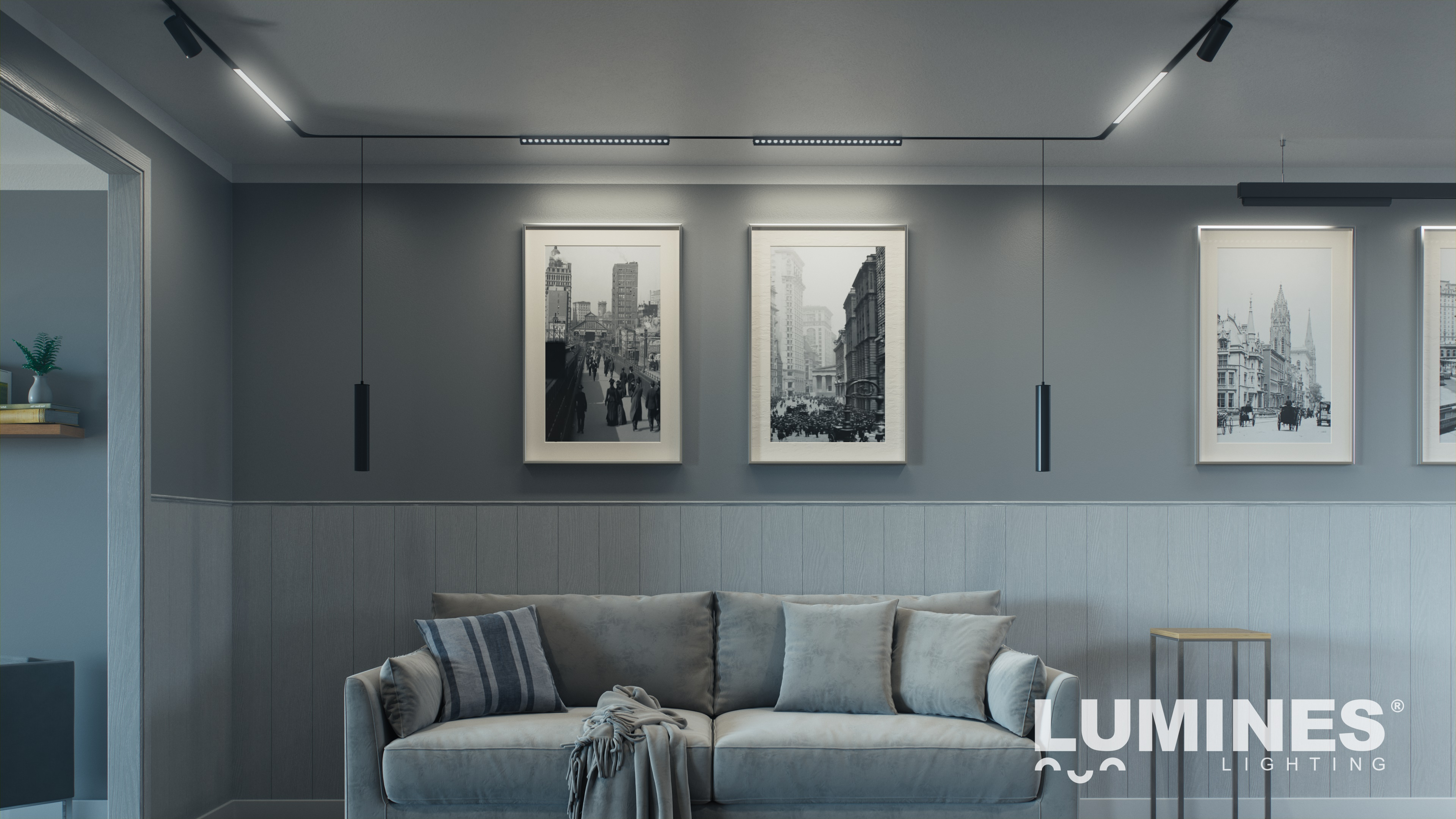 Das GENESIS System bietet vielfältige Beleuchtungsoptionen wie Strahler, Lichtlinien und Pendelleuchten und ermöglicht sowohl Grund- als auch Akzentbeleuchtung – optimal abgestimmt auf jede Raumgestaltung.