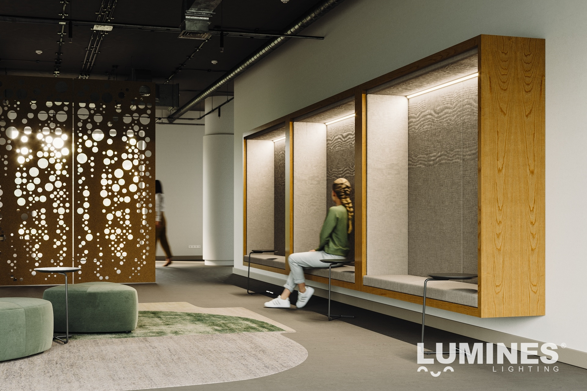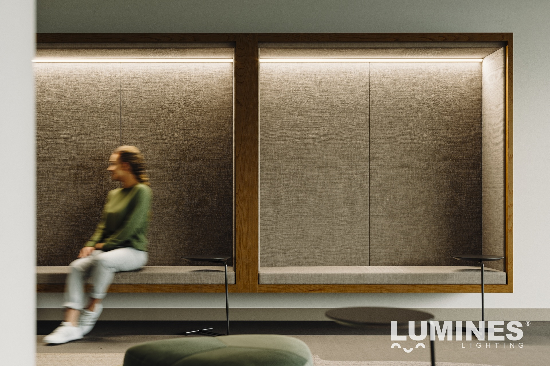 Das Aluminiumprofil LUMINES AGO ist für die Oberflächenmontage im 45°-Winkel vorgesehen.