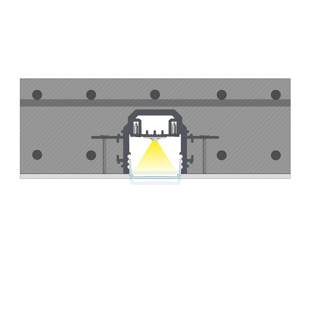 Es gewährleistet hohe Stabilität, Widerstandsfähigkeit gegenüber Belastungen sowie ein präzises Finish der Lichtlinie in Decken, Wänden und anderen Betonflächen.