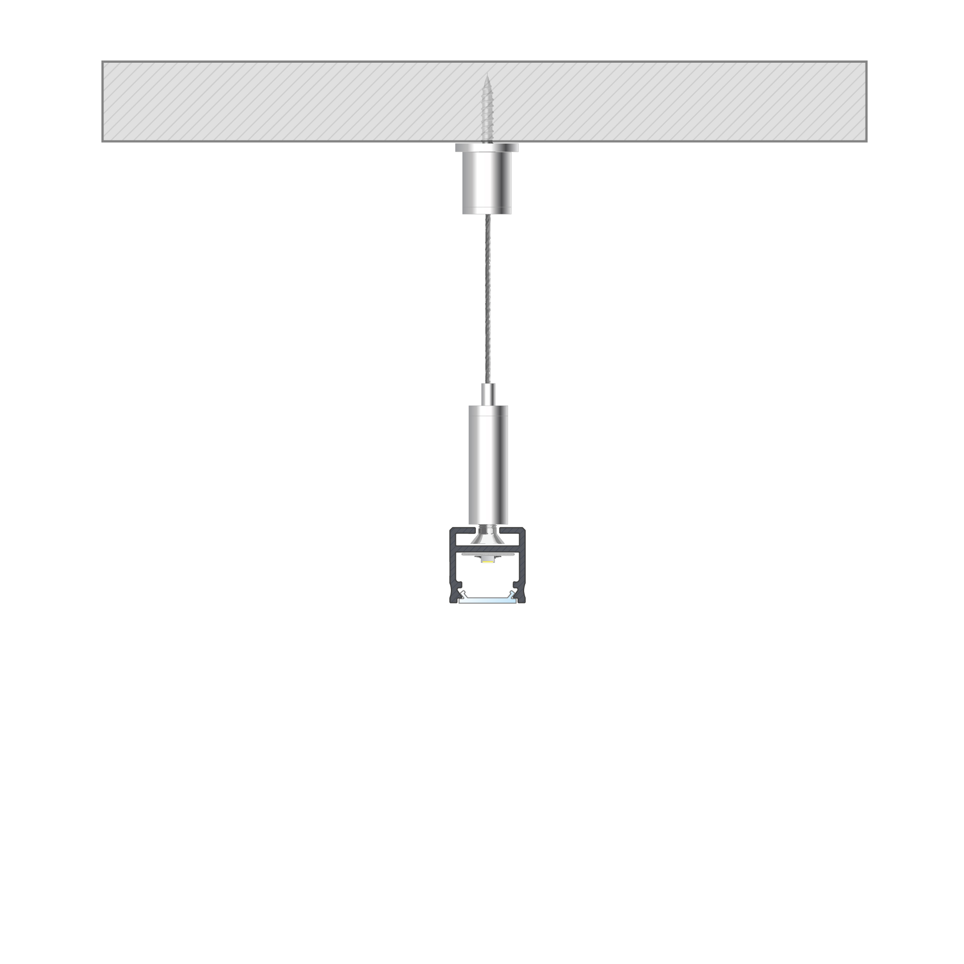 Das Endergebnis der Montage des FLEXA-Profils mit einer BASIC-Abdeckung unter Verwendung von Aufhängungen.