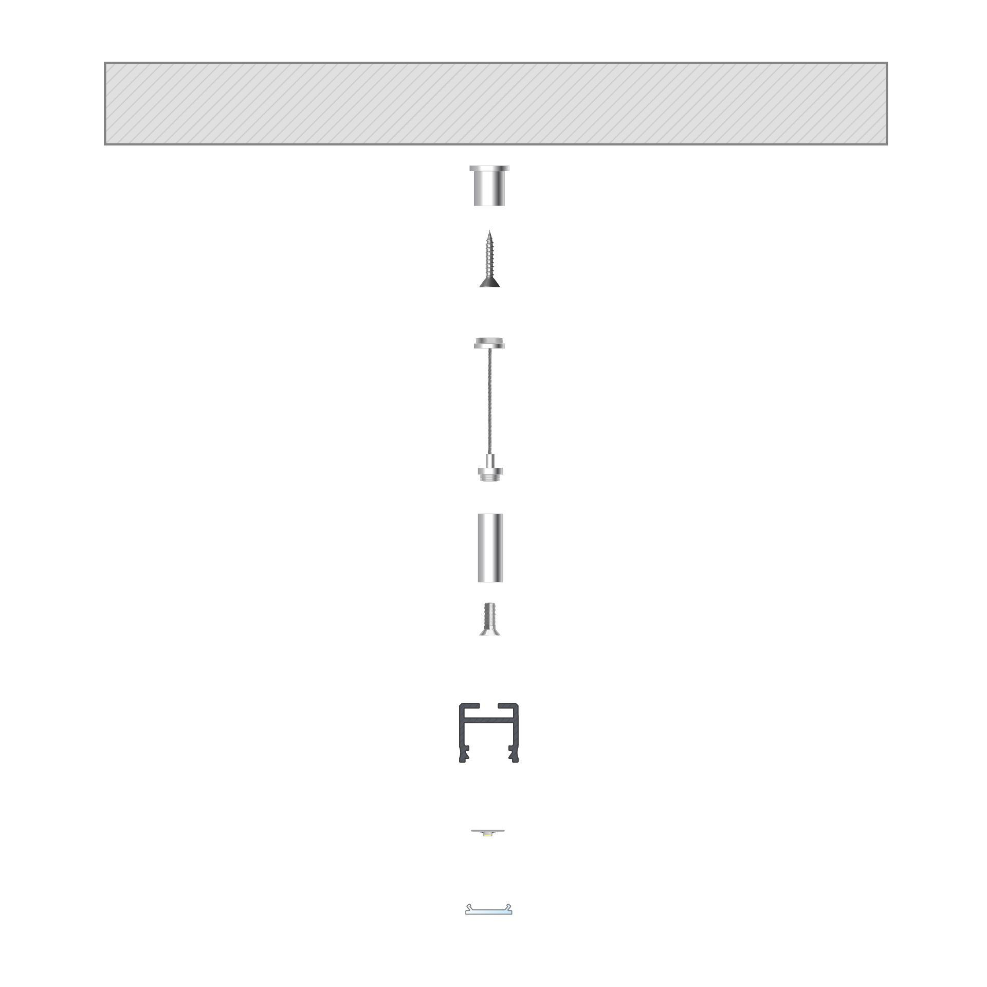 Anleitung zur Montage des FLEXA-Profils mit einer BASIC-Abdeckung unter Verwendung von Aufhängungen