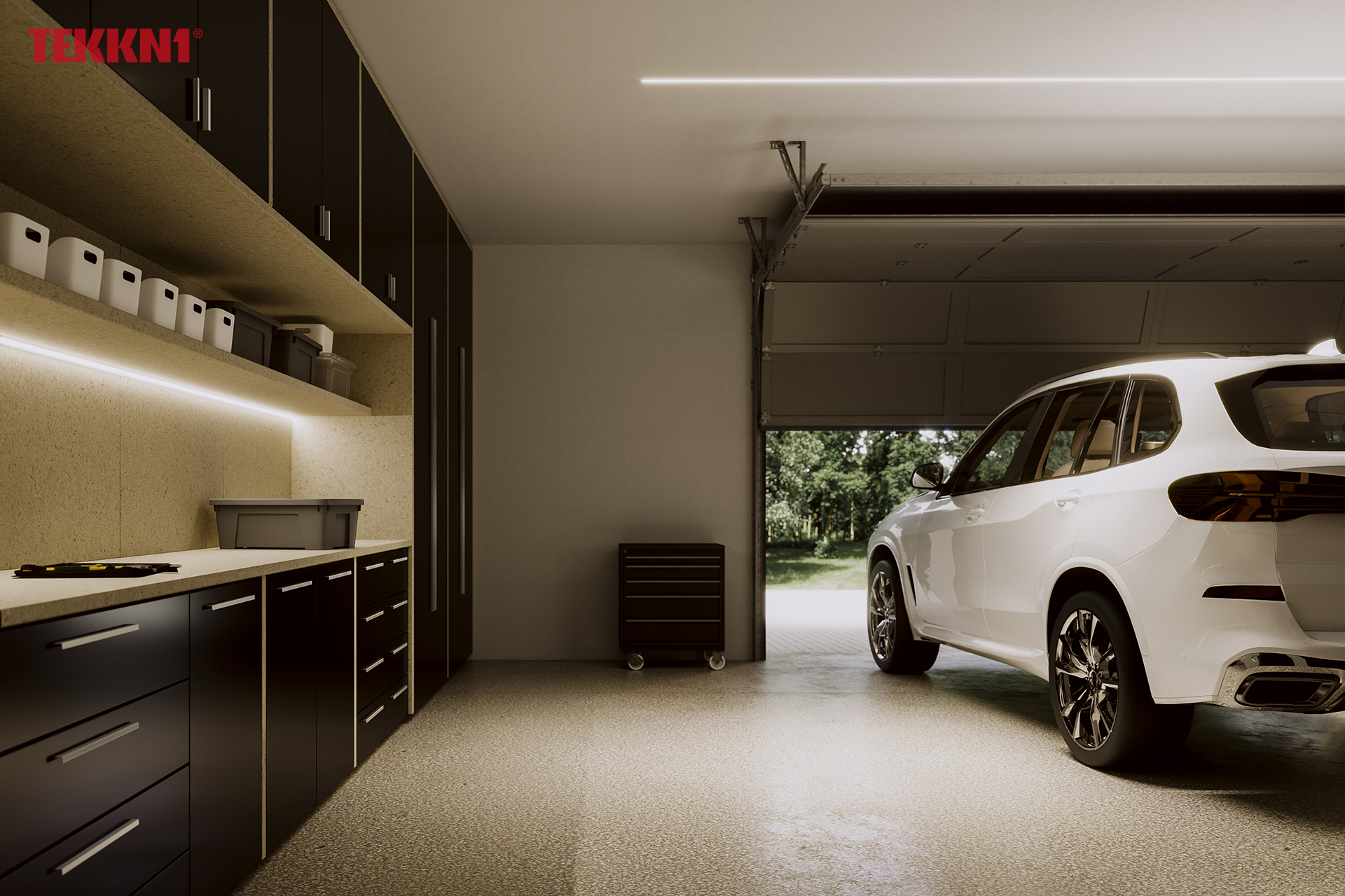 LED-Winkelprofil 45° für Anwendungen in Küchen und Ausstellungsbereichen. Eingesetzt zur Beleuchtung von Schränken, Arbeitsplatten und anderen Arbeitsflächen.
