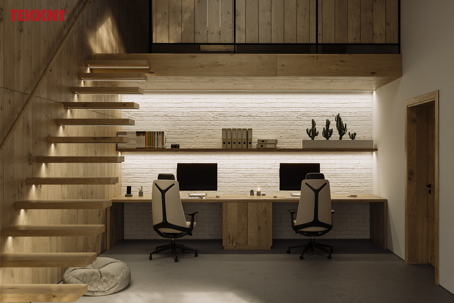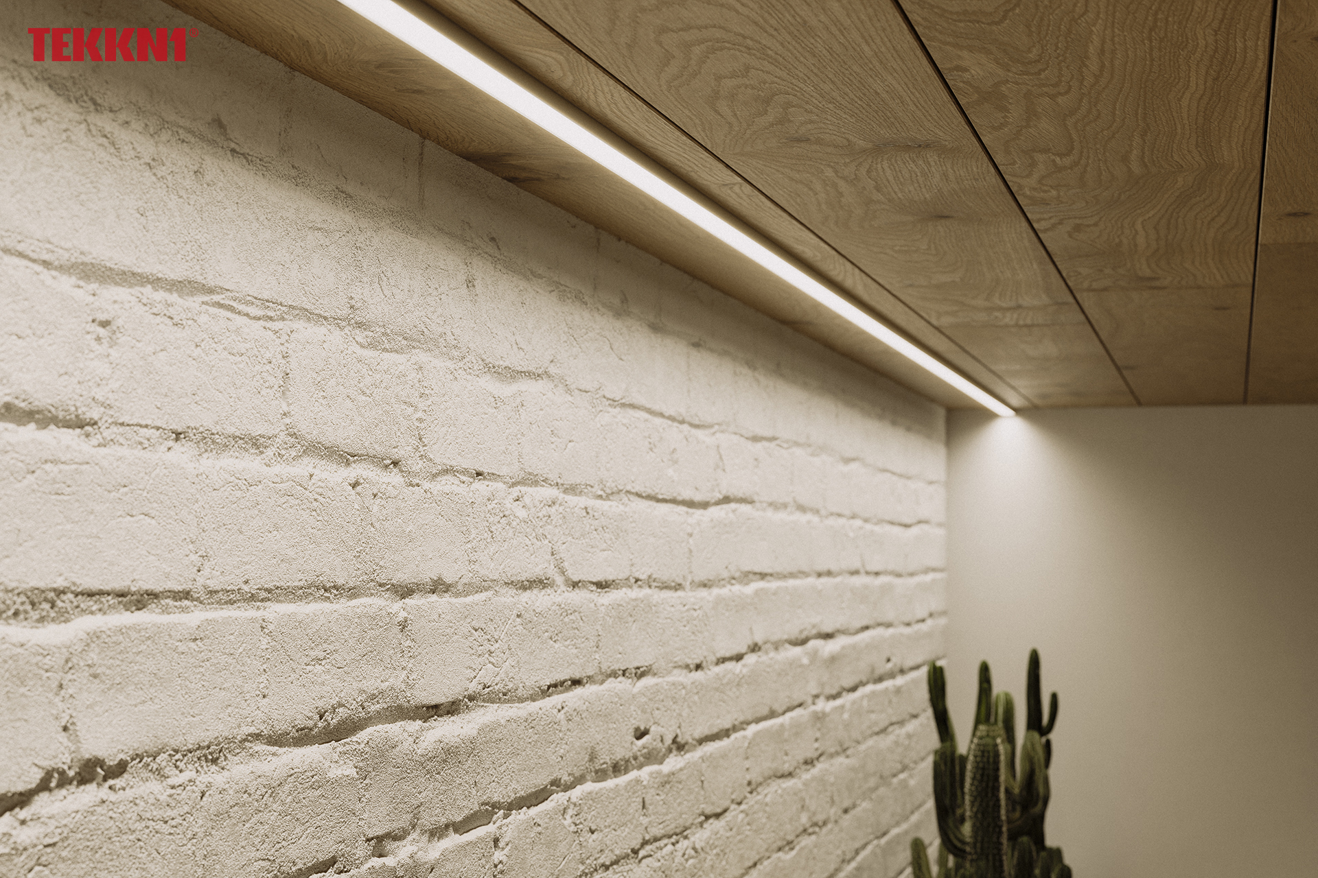 LED-Aufbauprofil für zwei LED-Streifen, für Anwendungen in Büro- und Wohnräumen. Ausgelegt für die Umsetzung dekorativer Beleuchtung.