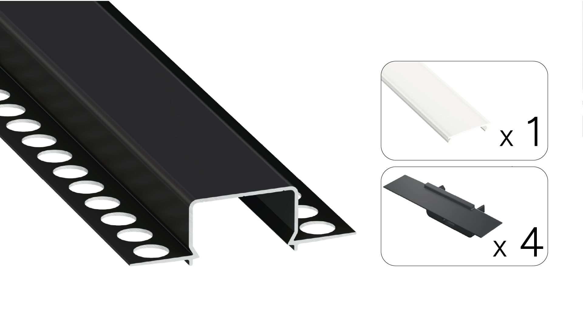 Lieferumfang: 1 × LED-Profil HORST, 1 × LED-Abdeckung M22, 4 × Endkappe HORST