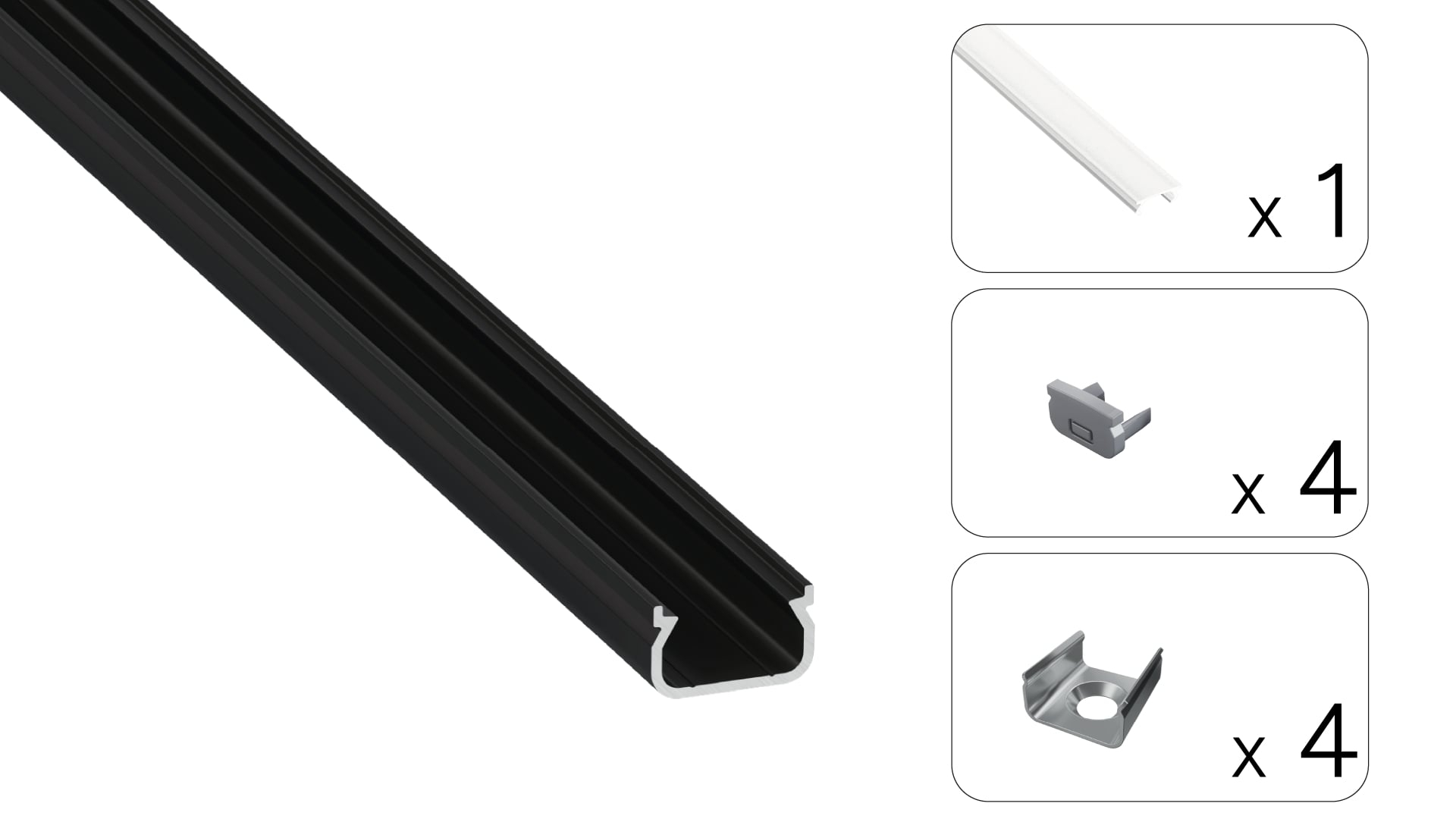 Lieferumfang: 1 × LED-Profil IKKE, 1 × LED-Abdeckung S10, 4 × Endkappe IKKE, 4 × Montagehalter IKKE