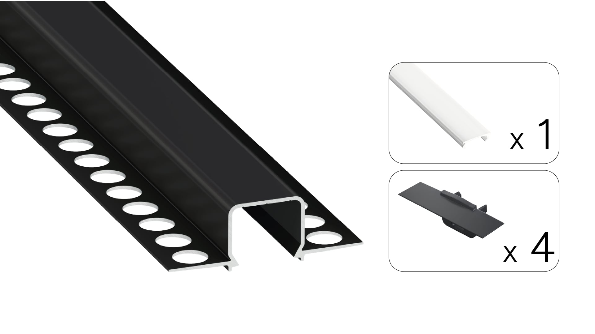 Lieferumfang: 1 × LED-Profil MOSSO, 1 × LED-Abdeckung S14, 4 × Endkappe MOSSO