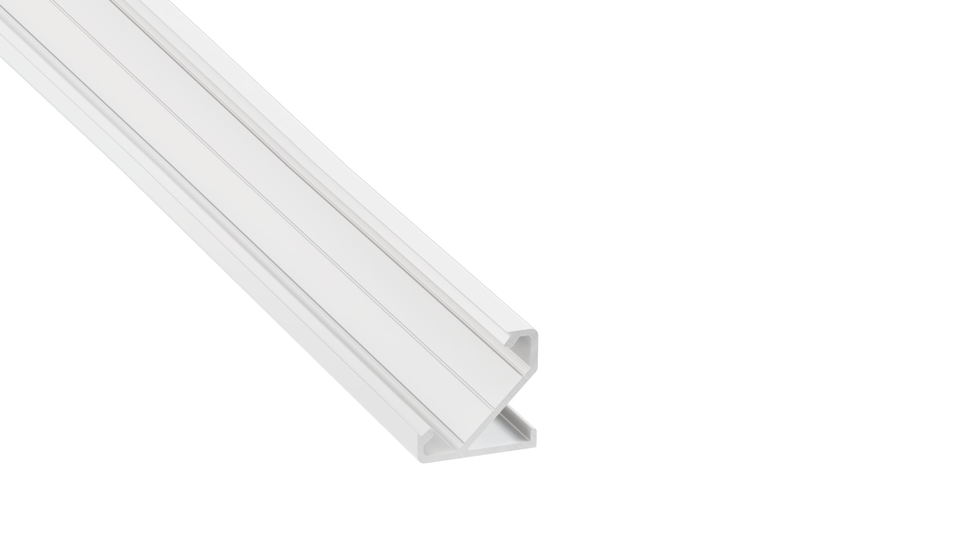 LED-Winkelprofil 45° für Anwendungen in Küchen und Ausstellungsbereichen. Eingesetzt zur Beleuchtung von Schränken, Arbeitsplatten und anderen Arbeitsflächen.