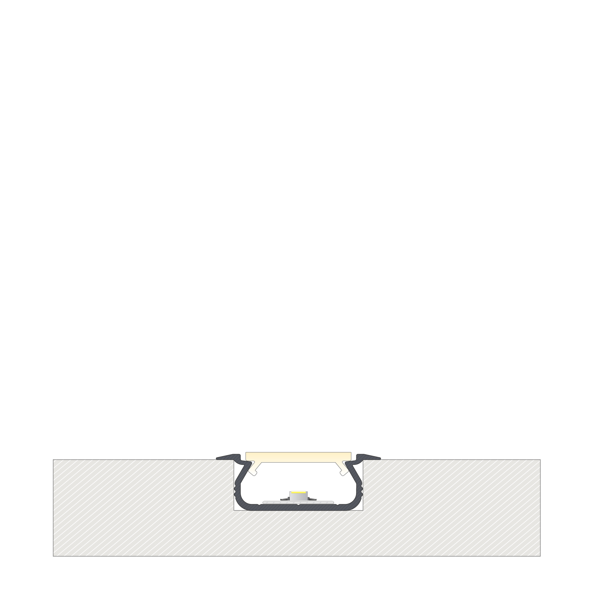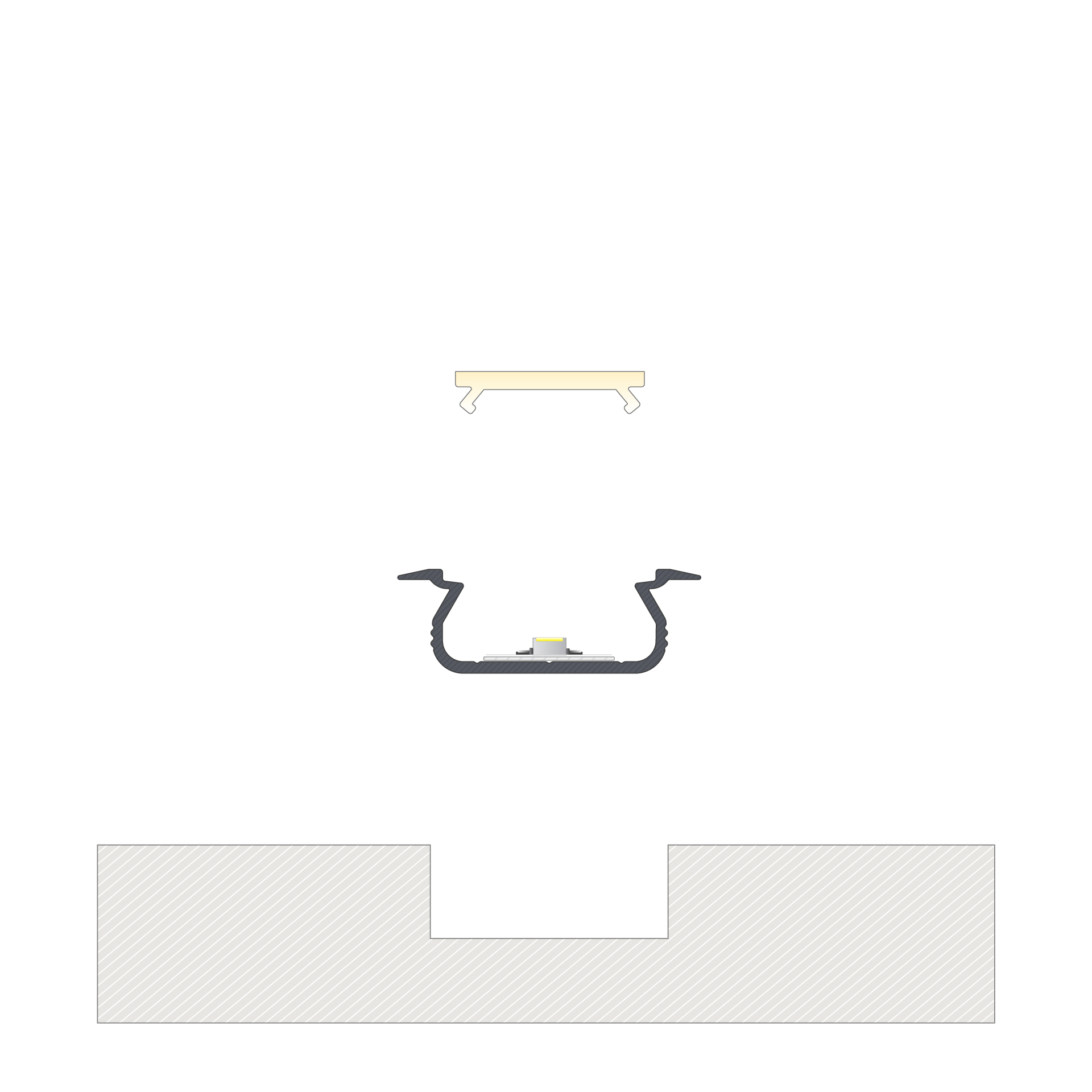 LED-Einbauprofil für Anwendungen in Küchen und Ausstellungsbereichen. Eingesetzt zur Beleuchtung von Schränken, Arbeitsplatten und anderen Arbeitsflächen.