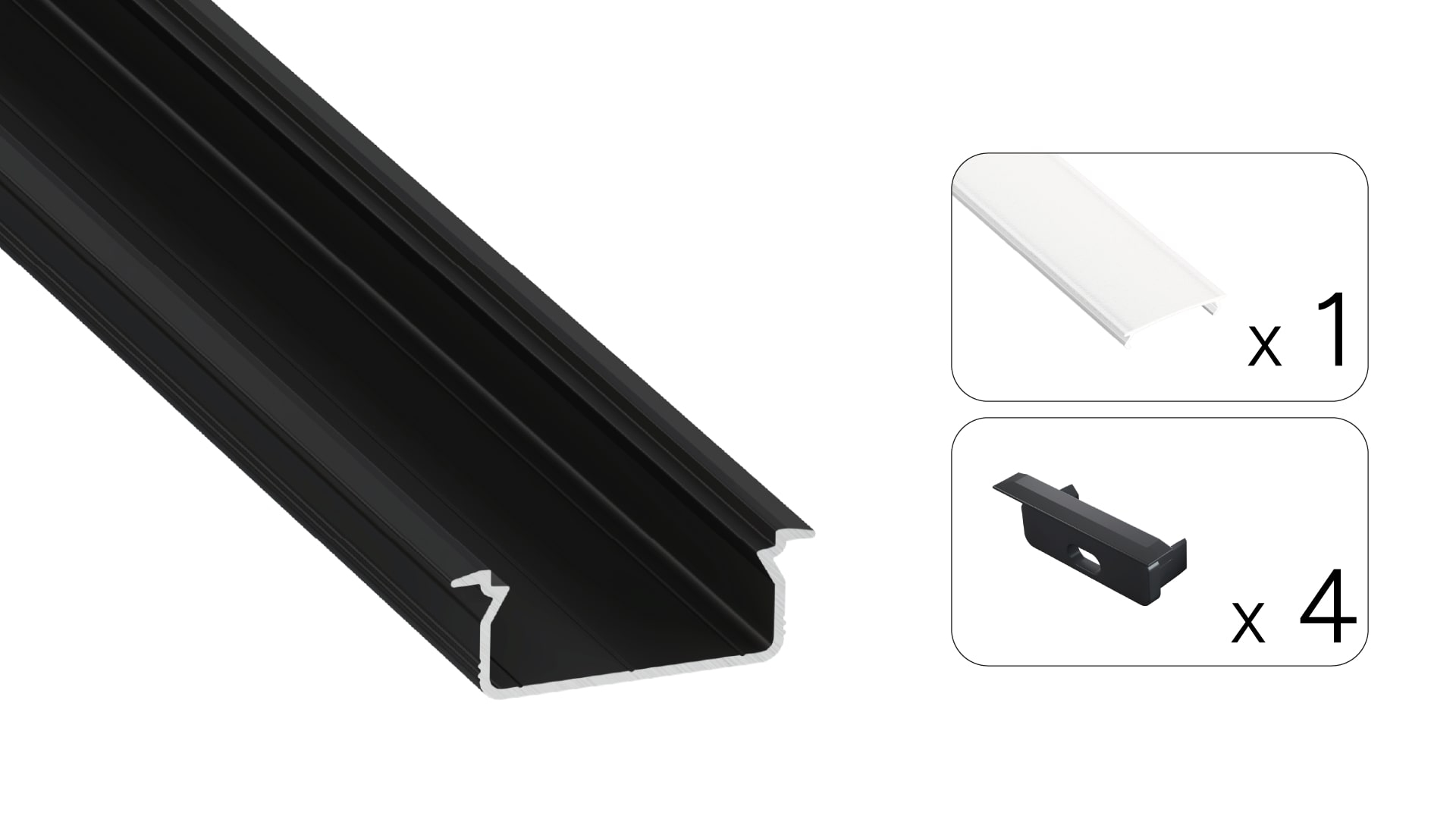 Lieferumfang: 1 × LED-Profil TVED, 1 × LED-Abdeckung M22, 4 × Endkappe TVED