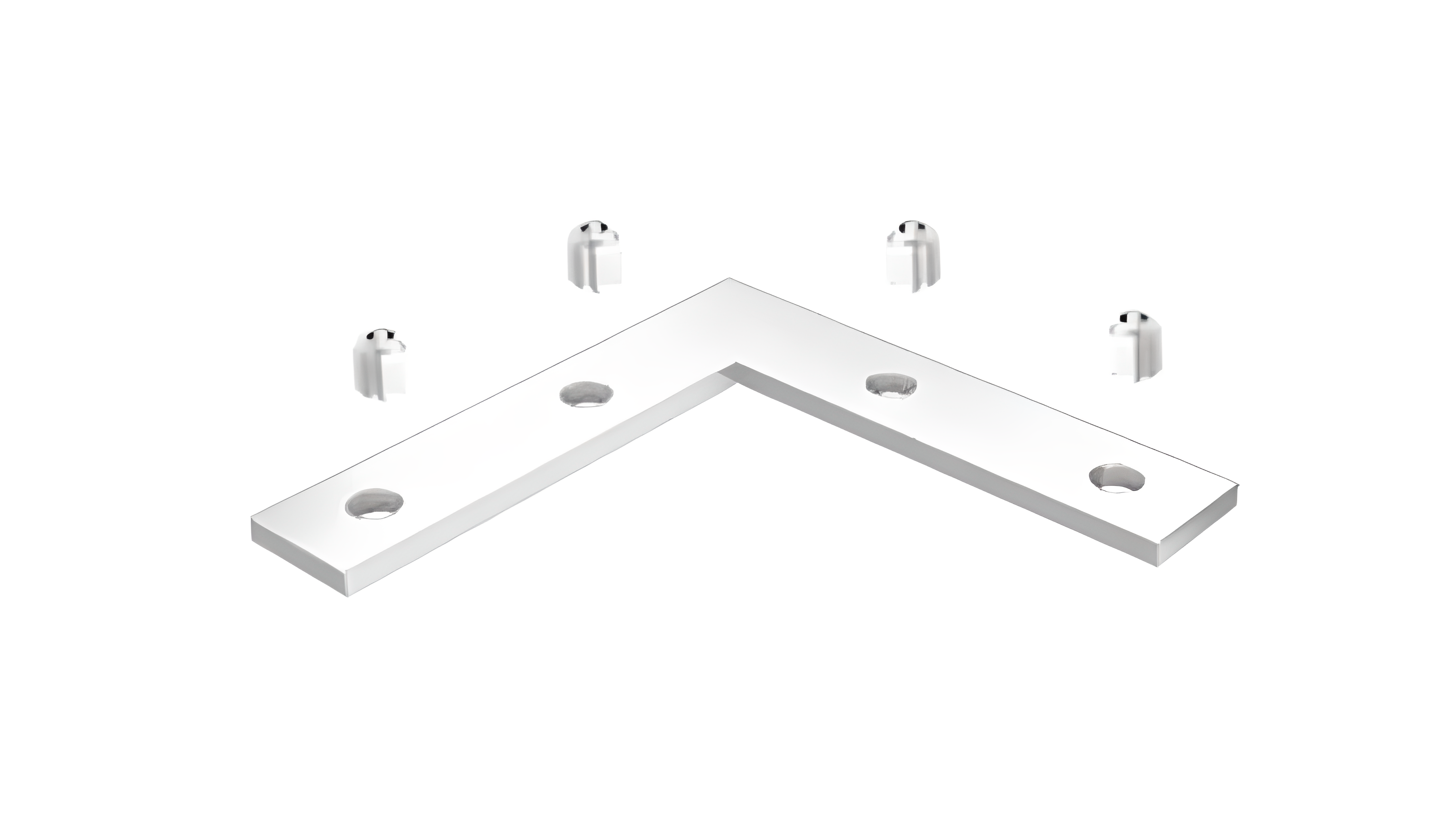 Winkelverbinder für Lumines-Profile. Sein Zweck besteht darin, die Steifigkeit der Struktur zu verstärken und die Installation von zwei im Winkel von 45 Grad geschnittenen Profilabschnitten zu erleichtern.